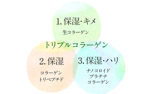 進化系トリプルコラーゲン!生コラーゲン・コラーゲントリペプチド・ナノコロイドプラチナコラーゲンの性質の異なる3種類のコラーゲンを配合で保湿、キメ、ハリを実現!