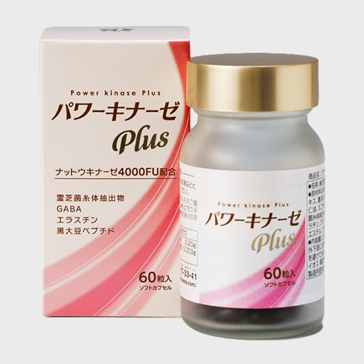 霊芝やGABAなどの素材をプラス!「パワーキナーゼPlus」には、ナットウキナーゼ以外にも伝統の和漢素材の霊芝、大麦由来のGABA、カツオ由来のエラスチン、黒大豆から抽出したペプチド、オメガ3を多く含む亜麻仁油、えごま油、オメガ9を多く含むオリーブオイルなどの健康サポート素材をしっかりとプラスしています。
