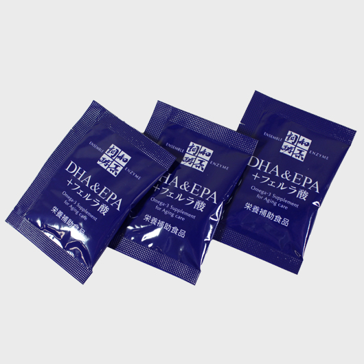 1包(4粒)にDHA&EPAを648mg配合!DHA・EPAは体内では合成できない脂肪酸(必須脂肪酸)で、18才以上は、1日1000mgの摂取が推奨されています。「DHA&EPA+フェルラ酸」の1包(4粒)にはDHA(216mg)とEPA(432mg)のベストバランスで合計648mgが含まれていますので、1日に1包お飲みいただくと摂取推奨量の約2/3を補うことができます。