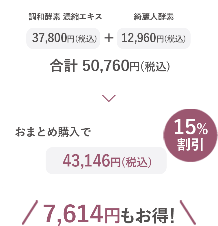 調和酵素 濃縮エキス 37,800円(税込)と綺麗人酵素 12,960円(税込)の2商品をご購入の場合