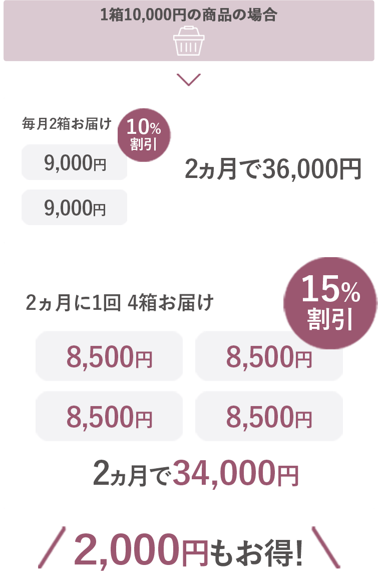 毎回ご注文いただかなくても、定期的に商品をお届けしますので大変便利です。